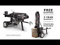 Our most powerful horizontal-vertical model. Split the biggest logs in either horizontal or vertical position. Switch configurations in seconds without tools. Ball-hitch included for highway towing at up to 45 mph
